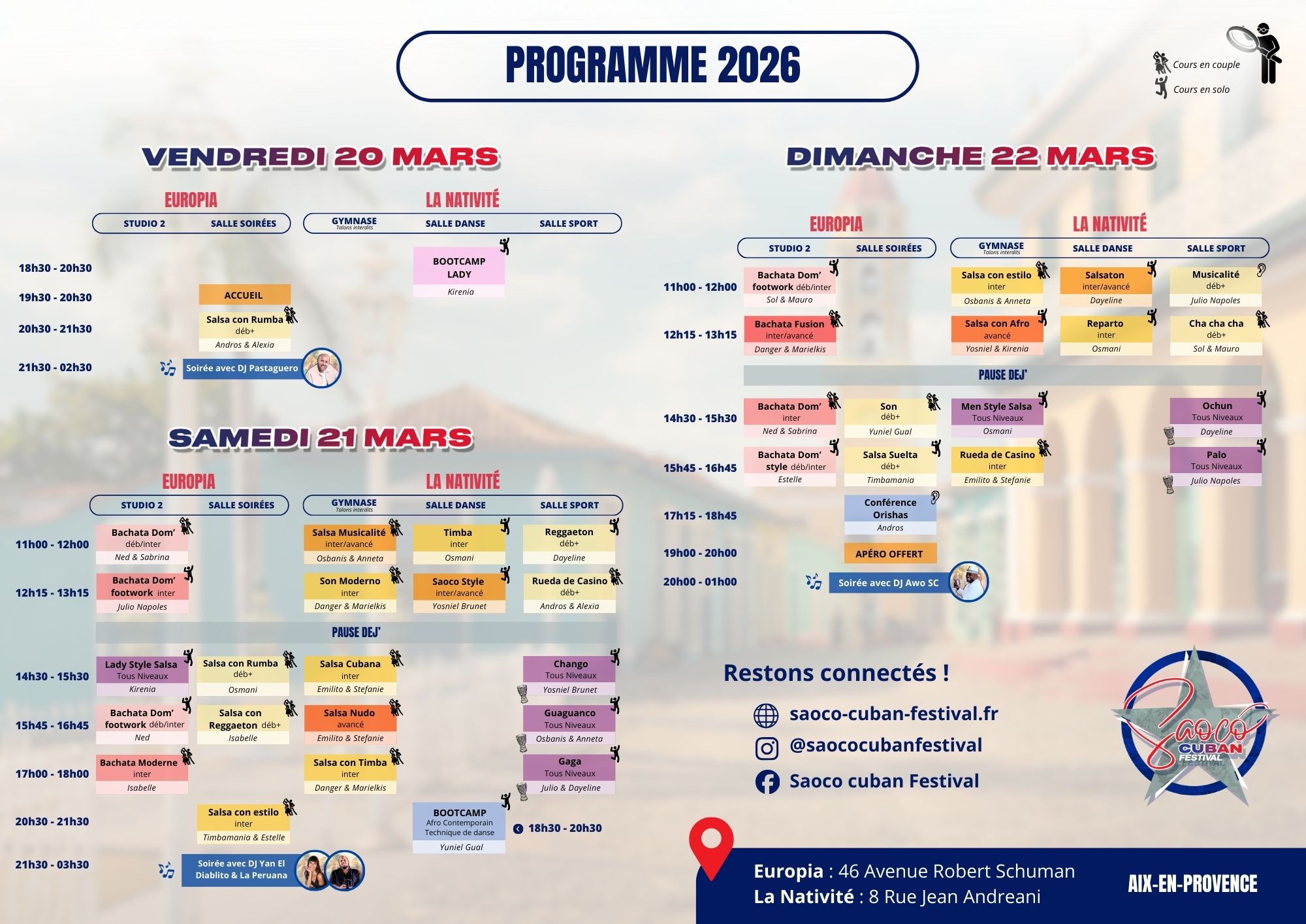 - 20h30 à 21h30 : Salsa con Rumba niveau déb+ avec Andros & Alexia
